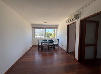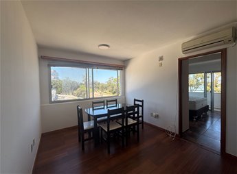 -Living comedor muy luminoso con aire acondicionado con cocina integrada con placares aéreos y bajo mesada.