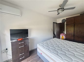 -Tiene 2 dormitorios y un estar que puede ser utilizado como otro dormitorio (uno de ellos con placard y aire acondicionado) y con puertas ventanas corredizas con cortina de enrollar.
